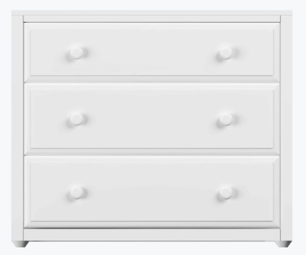 White Three Drawer Dresser made from solid, knot-free New Zealand pine.