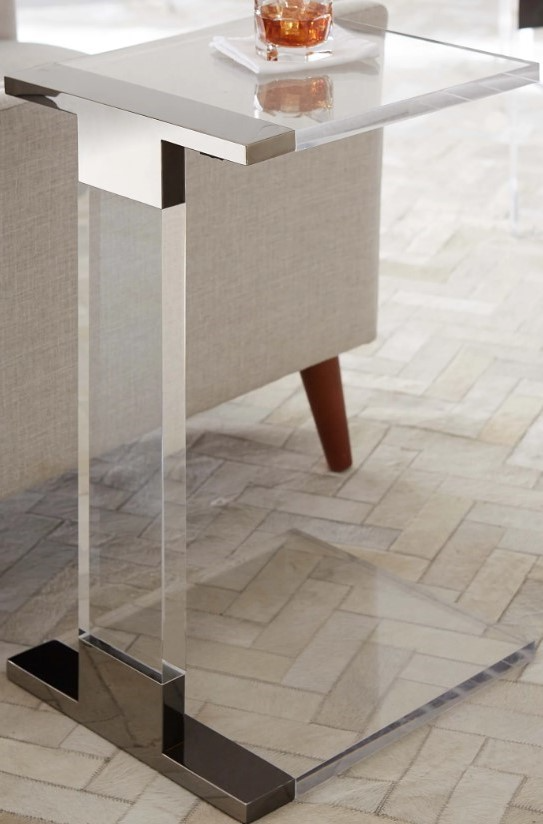 Modus Furniture Bastian Clear Acrylic End Table with Polished Stainless Steel