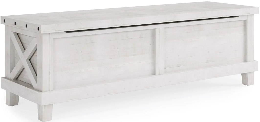 Exposed bolts, hammered metal pulls, cross-braces and a tilt-style mirror evoke the ingenuity and earnestness that characterized the turn of the century. Modern conveniences include full extension ball bearing drawer glides for maximum storage capacity and smooth, efficient operation. Felt lined top drawers provide storage for valuables and the nightstand features a convenient a pull out tray. Choose from headboards with cross braced detailing or cushioned linen panels fashioned with nail head trim. Bed frames include 5 cross slats with center leg supports for use with a box spring and mattress. Crafted entirely from solid wood, the Yosemite bedroom uses mortise and tenon frames, tongue and groove tops and frame and panel sides for strength and durability. 5-sided hardwood plywood drawer boxes with english dovetail corners are sanded and stained to match the exterior finish. The latest trend in design invites us to create our own unique spaces by combining different styles, finishes, textures and materials. The Yosemite bedroom is equally suited for a post-industrial downtown loft, a swanky brownstone or a suburban farmhouse. The versatile rustic white finish pairs well with bold, vibrant colors or muted and earthy tones. Soften the stark industrial aesthetic with plush rugs and bedding or embrace it with minimalist textiles and edgy metal accents. Black pulls and bolts will coordinate with most stainless or brushed nickel accessories and contrast with bronze or copper tones.