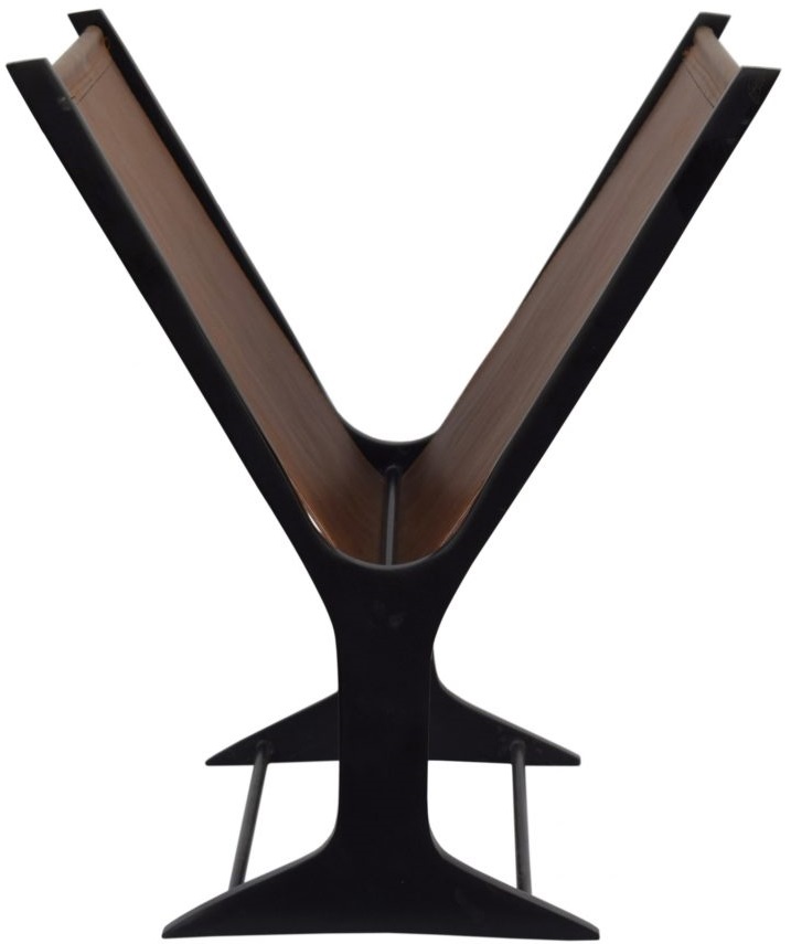 Clean bold lines, classic brown-leather and a complimentary jet-black frame make a stunning magazine rack. Keep your favorite publications close at hand in style. Powder-coated frame and genuine leather.