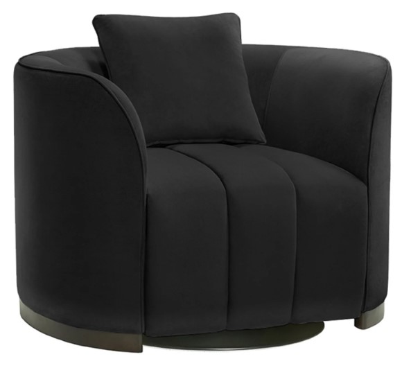Find yourself enveloped in the cushy Milano chair. Its curved design and plush upholstery combine to make this a welcoming seat. The black colored fabric, espresso wood supports, and channel seating make this chair a stylish addition to your living room décor.Read More