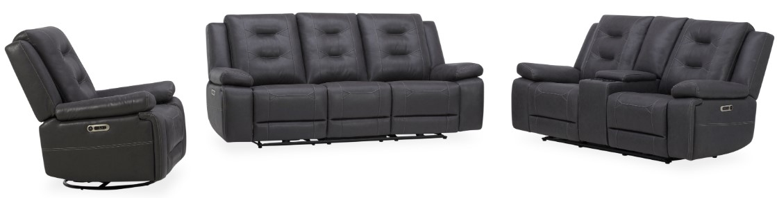 The Caldwell Power Sofa, Loveseat, and Recliner in Tahoe Charcoal are ideal for smaller spaces. Featuring high-performance fabric, generously padded arms, and USB charging in the easy-to-use switch. Ready for cordless use, it easily mounts any FreeMotion® bracket and battery, allowing flexible placement without wall restrictions.Read More