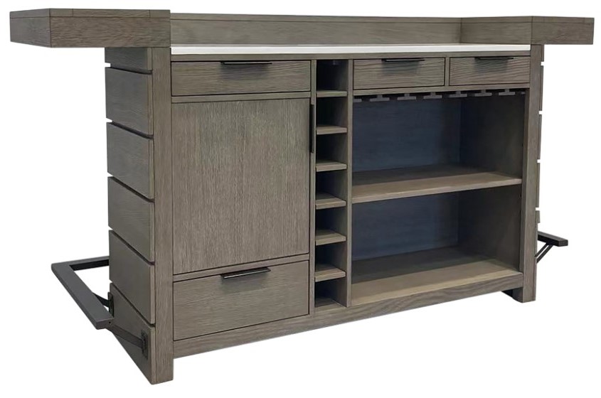 With its fashionable Quartz top insert, this bar is perfect for food and beverage preparation and serving. The bar offers a variety of storage options with both open and closed areas behind multiple doors and drawers.Read More