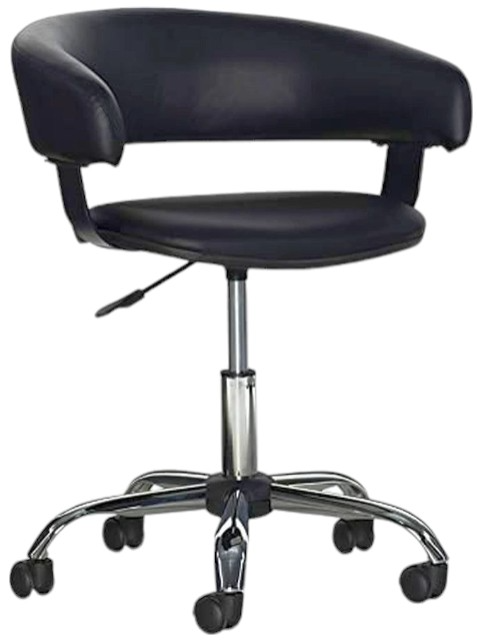 Veer in a modern direction when you add this contemporary Desk Chair to your home office or living area workspace. Its seat height is easily adjusted and the chair provides for roomy seating brimming with comfort and style.Read More