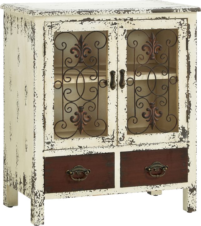 Perk up your decor with the eye-catching vintage flair of the Console. It features a cool antique white finish with heavy distressing that lends an appealing aged look to complement scroll accents and classic drawer pulls.Read More