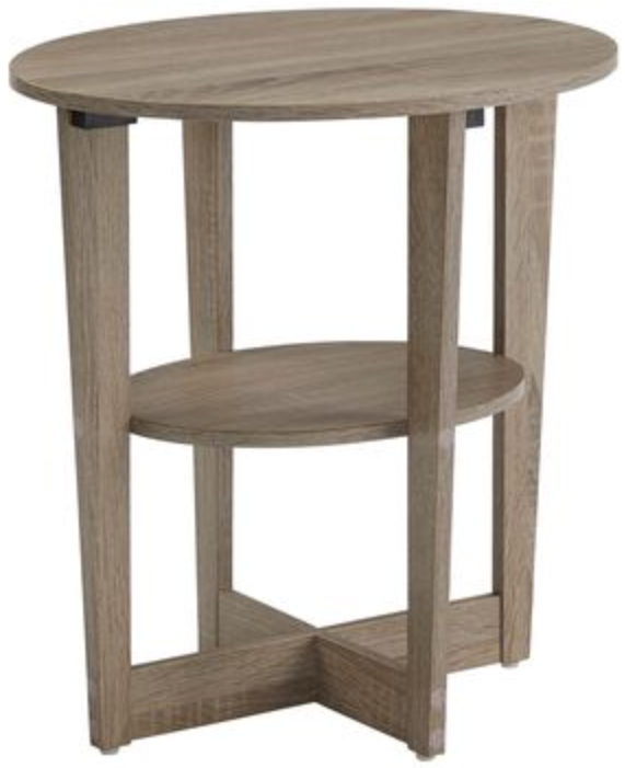 This oval bedside table is perfect for your small space needs and can also function as a small chairside table. An open shelf for display or storage. Finished in a neutral taupe color that will work with many styles and settings.Read More