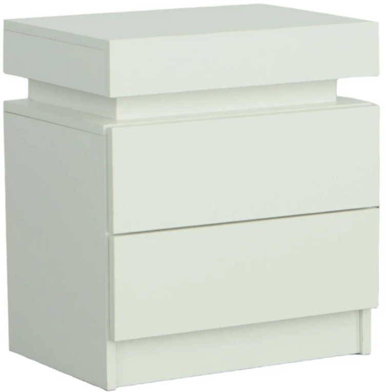 Modern style nightstand with lots of storage and LED mood lighting. A simple transitional design with ample drawer storage. LED lighting with 3 color settings of red, green, & blue operated with a remote that is included. The melamine veneer makes it easy to clean. Lower height works well with more contemporary settings.Read More