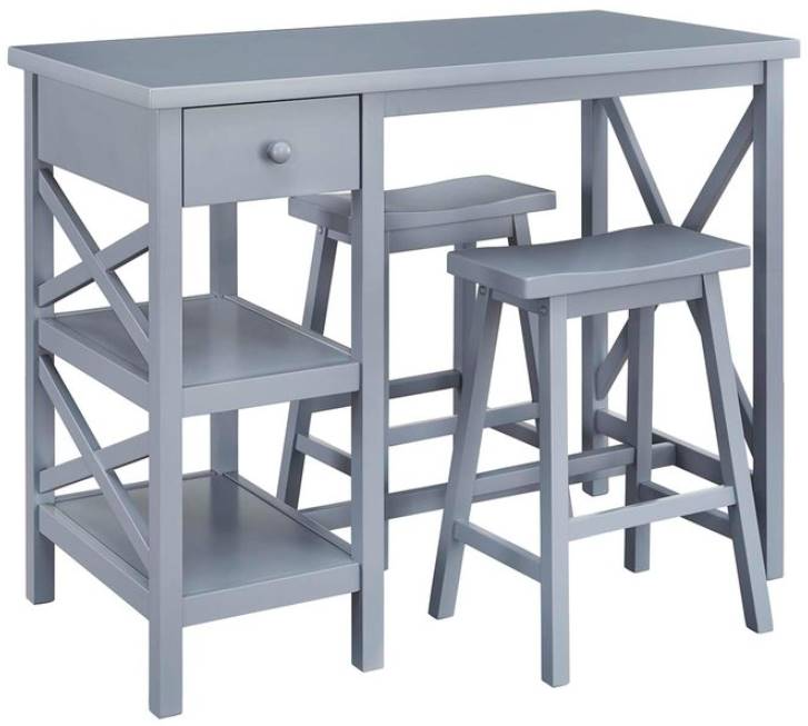 The perfect table if simple, clean, transitional function is your need. This cute counter height table comes with 2 counter stools. Finished in a modern slate gray color perfect with all the latest styles and colors of today. Includes two spacious open shelves and one drawer for your hidden storage needs.Read More