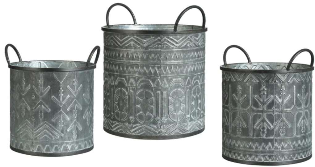 Add some flair to your home décor with this amazing bucket from Stylecraft. This galvanized bucket features a set of three embossed design metal pales with handles that is sure to add a touch of elegance to any room.Read More