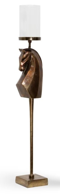 The Stylecraft Bronze Large Horse Bust Sculpture Post Candle Holder is a decorative piece that combines a bronze horsehead sculpture with a glass candle holder on top. It is both functional and stylish, making it an excellent complement to any design.Read More