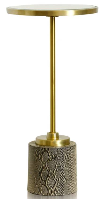 This drink table from Stylecraft brings elegant look to your room. Shown in gray and gold finish. This table features a faux snakeskin weighted base and has mirror top. Elevate the look of your room by incorporating this table.Read More