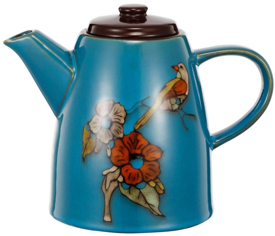 Elevate your daily routine with the exotic melodies teapot. Its vintage inspired design showcases vibrant orange and red birds and flowers on a vivid blue stoneware backdrop. This small teapot, complete with a lid for warmth, doubles as a stylish standalone decoration. Retro charm in every pour.Read More