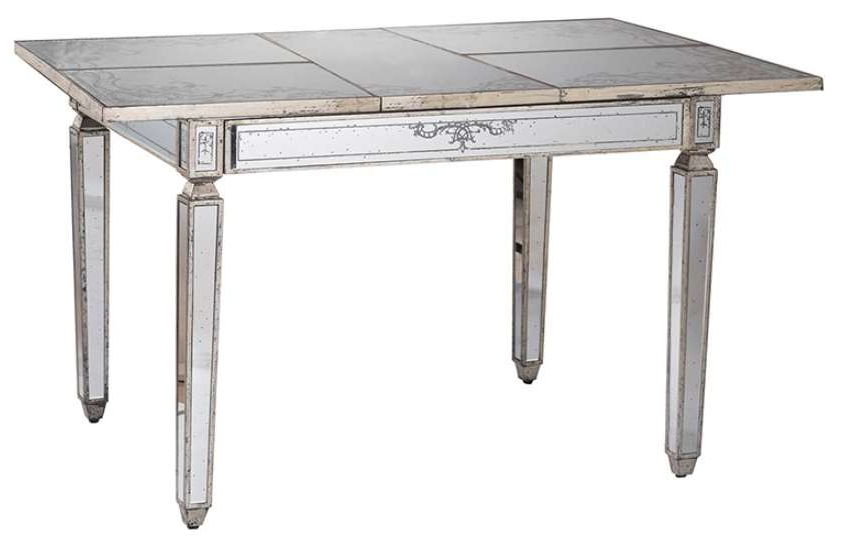 Pair this versatile mirrored Table with a variety of decor styles to add shimmer to your space. Made from MDF and glass, this dining table features mirrored panels across the top and side, with the rest of the table finished in a champagne color. This table is timeless in its style and structure.Read More