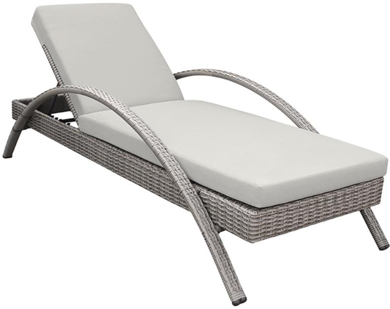 With 5 adjustable positions, the Aloha chaise lounge keeps you in the perfect position to enjoy the weather, lounge, read, or take a mid-day nap. Maintenance and upkeep are easy tasks with this outdoor chaise, as the cushions feature a convenient zipper closure that makes cover removal and cleaning a breeze. The polyester upholstery on this patio chaise lounge is not permeated easily by water. Secondly, polyester resists the types of molds and mildews that will take root in fabrics made of natural fibers. The frame and beautiful elongated arms are constructed in a beautiful resin wicker weave making this pool chaise lounge long lasting and durable. Resin wicker is nonporous and dyed all the way through. It is loaded with ultraviolet light treatment so the color stays true and fresh for years to come. It is resistant to a variety of chemical solvents, lighter stronger, harder, and can withstand higher temperatures, and can withstand temperatures of 230 degrees Fahrenheit. The patio chaise lounge can store away easily when needed as they are stackable. The all-weather wicker is wrapped around an aluminum frame, making it lightweight and easy to move and reconfigure when needed. Use these chaise lounge chairs for outside or indoor environments and enjoy the benefits of the adjustable back height, weather resistant materials, and sleek style all year round. The Aloha adjustable beach chair is available in your choice of grey or white wicker, both come with grey cushions.