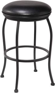 The Armen Living Amy contemporary backless barstool features a practical design that makes it easy to carry, but comfortable to sit on. The Amy's round, Faux Leather upholstered seat cushion is padded with soft foam, providing an exceptional degree of comfort and relaxation. The stool's rounded legs present a fresh spin on the traditional barstool design while the added ring footrest offers excellent user support while seated. The Amy features a 360 degree swivel function that allows for an optimal degree of movement. The added rubber nibs on the stool's legs assure that the Amy will not slip on or damage floors when moved. The Amy is an excellent choice for the home bar or kitchen and is available in two design styles; a Matte Black finished variant with a Ford Black Faux Leather cushion and an Auburn Bay finished variant with a Ford Brown Faux Leather cushion. Both styles are sold in two industry standard sizes; 26 inch counter and 30 inch bar height.