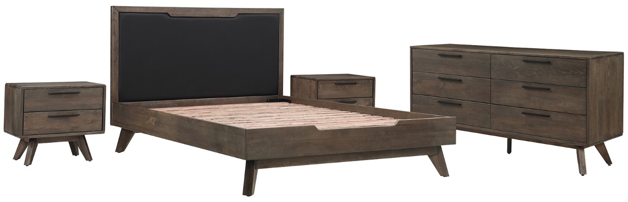 The bed, dresser, and nightstand all feature the same sturdy tapered legs that give this set a mid-century modern flair while still being able to seamlessly incorporate into your existing décor. The dresser and nightstand both feature a soft close mechanism that allows you to extend the life of the drawer by minimizing stress on the hinges, drawer rails, and drawer stops. This 4-piece solid oak bedroom furniture set includes 1 King or Queen size bed, 1 dresser, and 2 nightstands and is the ideal addition to your bedroom or guest room.