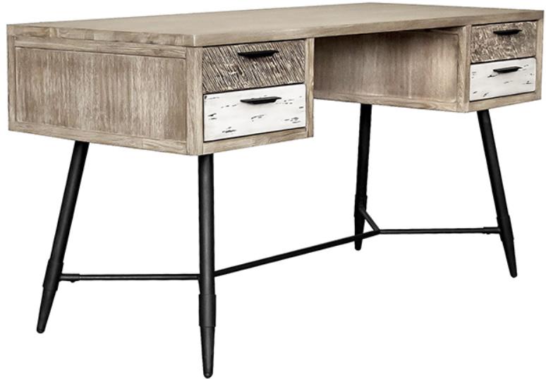 Create a warm and inviting workspace with our Bridges four-drawer desk in two-tone Acacia wood. Modern and streamlined, our desk explicitly displays the rich grains and tonal variations of Acacia wood. Elevated upon a sleek black metallic trestle style base.Read More