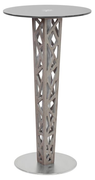 The Armen Living Crystal contemporary bar table combines an elegant glass top with an ornate gray walnut wood and brushed stainless steel column set atop a durable round base. The modern design of the piece makes it the perfect accent item in any living or dining room.Read More