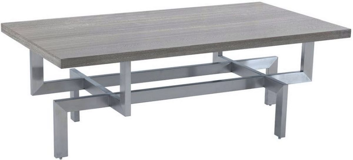 The Illusion Grey Wood and Brushed Silver Coffee Table from Armen Living from Armen Living is the premier coffee table for your living room area! The tremendous width of the Illusion caps out at 51” - ample space for any of your daily necessities or supplies.Read More