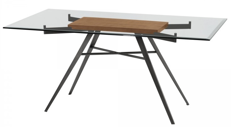The Armen Living Leah contemporary dining table is a terrific addition to the modern household. Stylish and durable, the Leah features a mineral finish metal base that is both reliable and eye catching. The Leah's frame is perfectly accented by its clear tempered glass top. Below the glass, the Leah features a stylish wood insert that is available in your choice of natural or grey walnut.