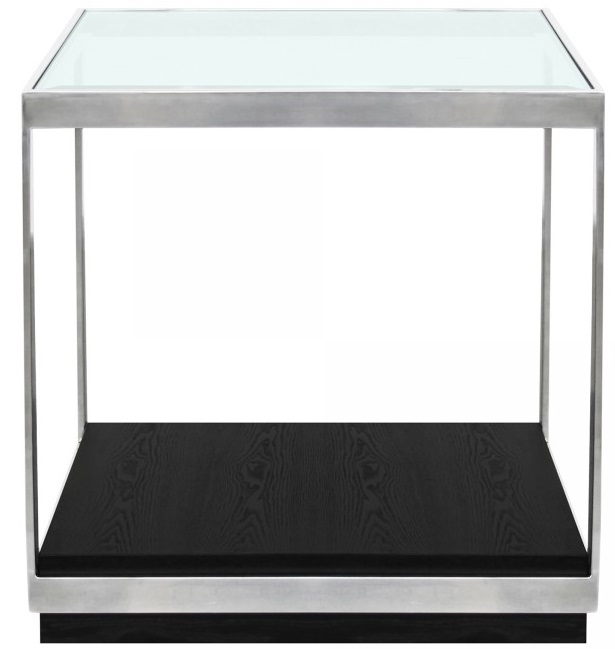 The Armen Living Manchester contemporary end table is the perfect piece for any modern household. This elegant end table features a stylish polished stainless steel frame complemented brilliantly by a black base, creating a truly novel, yet practical product. The Manchester is topped with durable tempered glass, assuring long term quality without compromising on the table's chic appearance. The stylish and sophisticated Manchester end table is available in black.