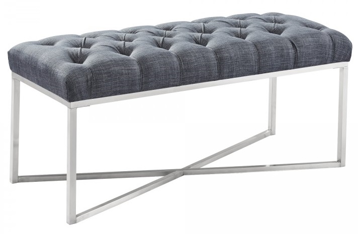 The Armen Living Noel contemporary bench is a stylish piece sure to enhance the aesthetics of any modern household. The Noel's beautiful cross leg, brushed stainless steel design make it a durable, yet stylish piece. The elegantly tufted seat of the Noel presents a unique look without compromising on the item's exceptional degree of comfort. The Noel is available in your choice of slate grey linen or grey faux leather upholstery.