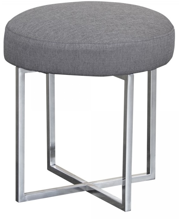 Rory Modern Polished Stainless Steel and Grey Fabric Ottoman