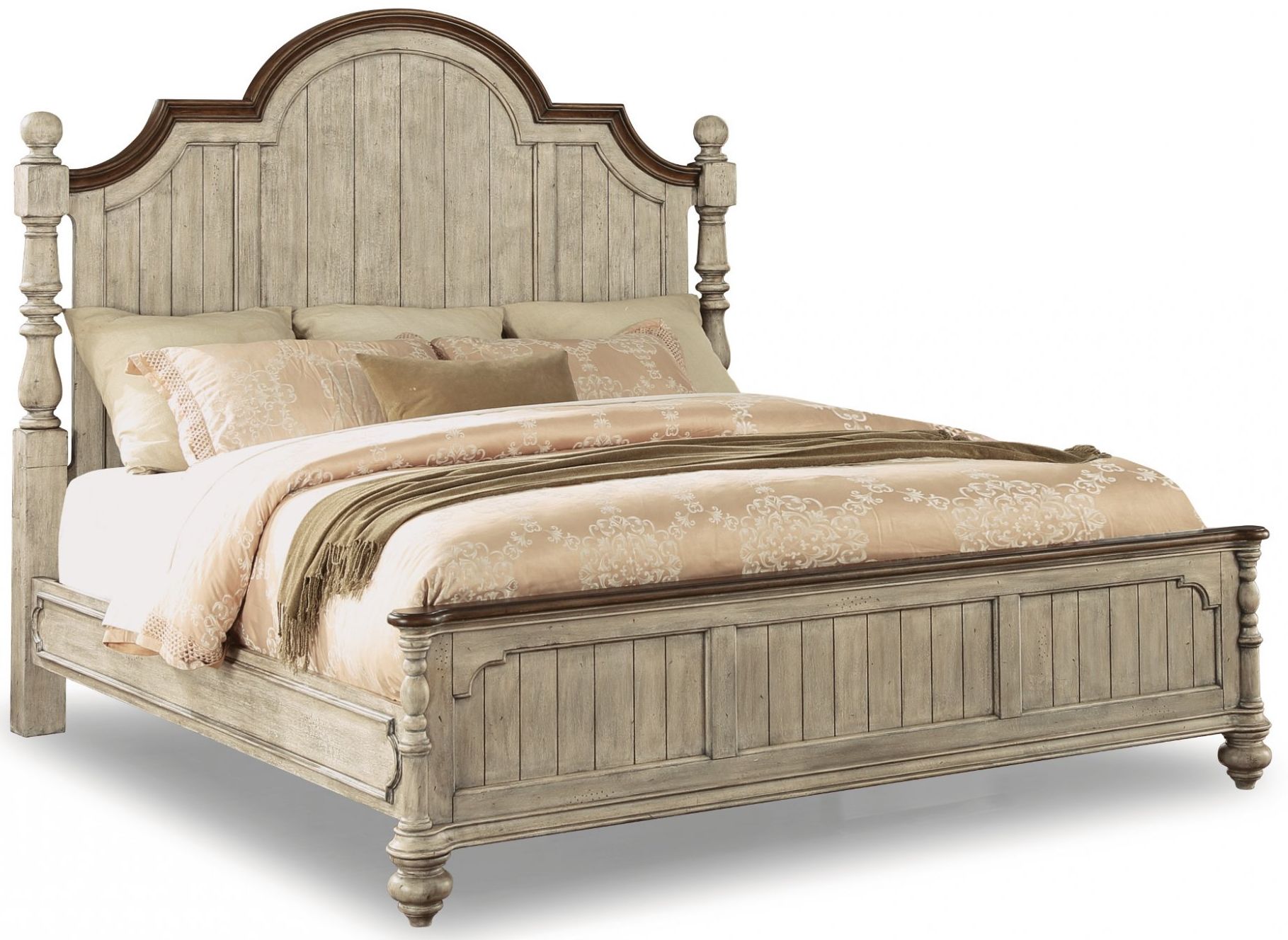 The Plymouth bed boasts a shabby chic design with contrasting wood finishes and paneled construction. With an overall whitewash finish accented by dark trim, Plymouth is ideal for those who like a bit of vintage design in their modern lives.
