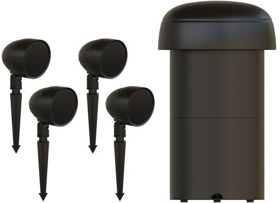 The landscape speakers in this system can be mounted on any solid surface due to the universal mounting bracket (sold separately). The subwoofer also has a multi-mount design that allows for above-ground, in-ground or deck surface mounting.