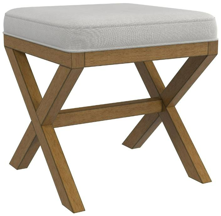 With a sleek low profile, this backless vanity stool knows how to multitask gracefully. An amply padded square seat upholstered in fog fabric features tailored welting across the top and bottom of the cushion, displaying its impressive angles. Meanwhile, the wooden x-style base in a dark driftwood finish brings together timeless style and durability.