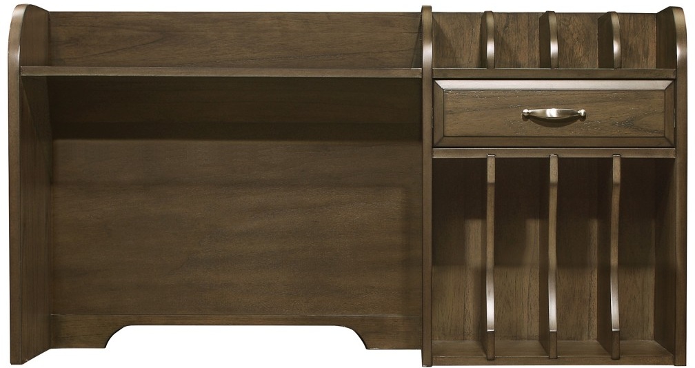 Completing your workday activities in an efficient manner within an environment that allows for you to reach your goals, the addition of the Blanche Collection will provide a platform that sets you up for success. The brown-gray finish, over mindy veneer, is paired with satin nickel bar pull hardware ensuring the look of the collection is a perfect match for your decorative preferences. The hutch features a file compartment storage and a small drawer for ease of access to your desktop accessories.