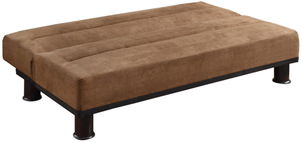 Supported by column legs, covered in brown microfiber and featuring a streamlined design, the Callie Collection adjusts with an easy motion click mechanism. Also offered in gray microfiber.
