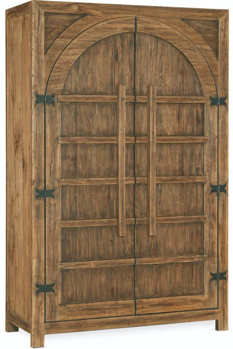 Inspired by the grandeur of wide open spaces in the American wilderness, the Big Sky Wardrobe exudes warmth with its rustic Pecky Hickory Veneers and Vintage Natural finish. The sweeping arched panel at the top of the case, authentic door hinges and wood bar hardware take you back to the heritage of post.Read More