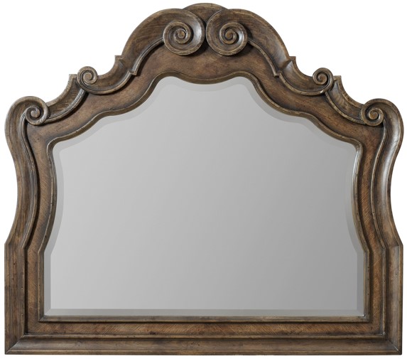 The original inspiration for the Rhapsody Collection was a scroll carving, which became a recurring theme throughout the collection on signature pieces, such as this romantically opulent mirror. Combined with the walnut-colored finish with a rustic reclaimed look in beautiful patinas, the mirror strikes a tone of laid-back luxury.Read More