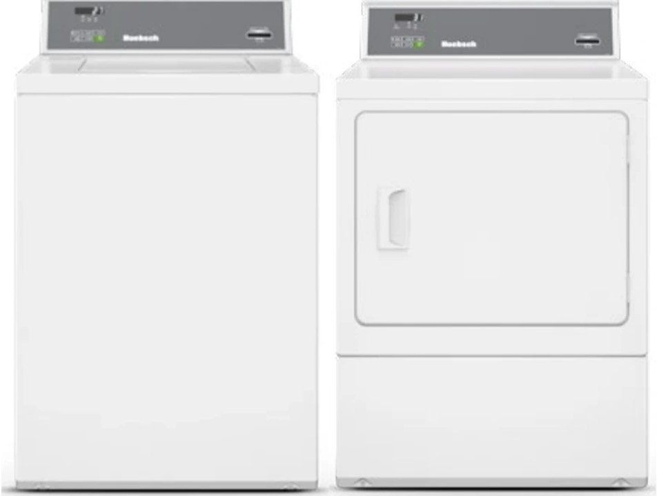 Huebsch White Front Load Prep For Card Commercial Laundry Pair with a 3.2 cu. ft. capacity top load prep for card commercial washer and a 7.0 cu. ft. capacity front load prep for card commercial electric dryerRead More