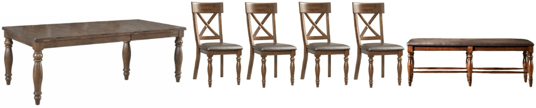 *One dining table and four side chairs and one bench only, all other products are sold separately, Images may not reflect actual size. Color in images may differ in person; see retailer for actual finish.