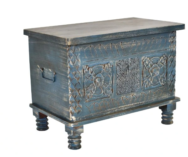 The Jaipur Furniture Carved Chest Box features intricate carvings and a vibrant blue finish. Its detailed craftsmanship and striking color make it a standout piece, perfect for both storage and adding a bold, decorative touch to any room.Read More