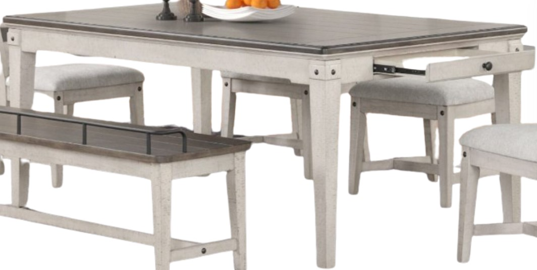 The Lifestyle Light Gray Top 2-Drawer Dining Table with Brown Base combines contemporary and rustic elements. The light gray tabletop offers a modern touch, while the brown base adds a warm, earthy contrast. Two built-in drawers provide convenient storage for dining essentials. This table blends style with functionality, enhancing any dining area.Read More