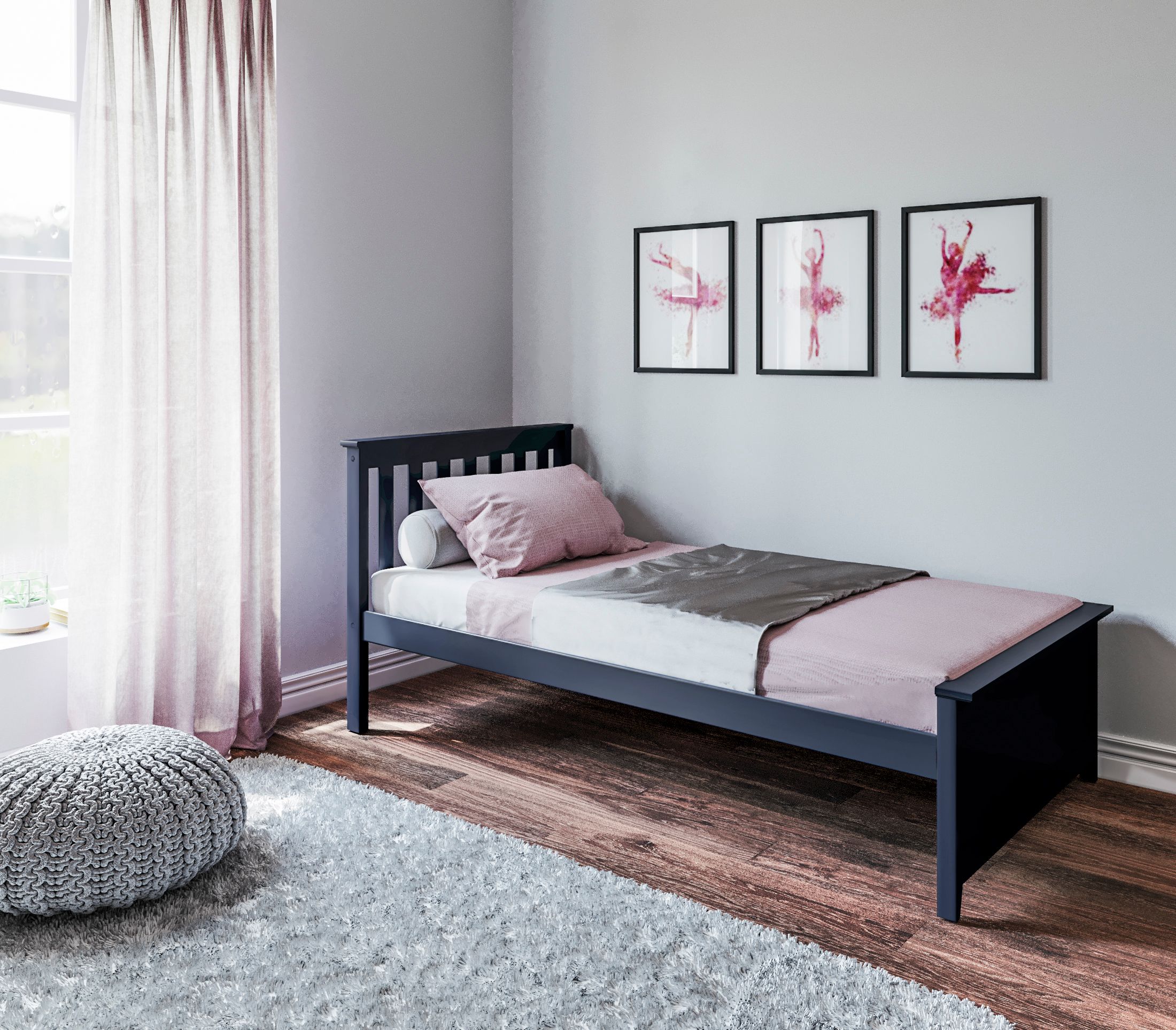 Space-saving: Bed measures 82 x 42 x 39 in. (LxWxH) to fit kids rooms.