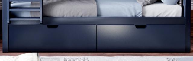 Two Blue under-bed storage drawers with rubber castors.