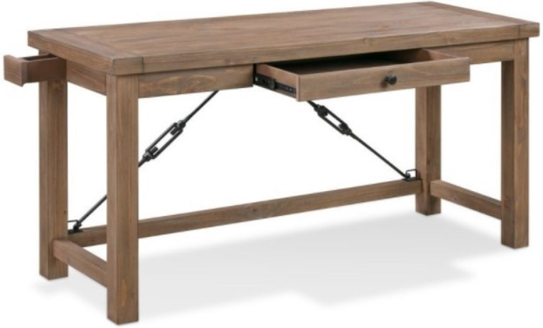 With all-solid wood construction, clean lines, and functional appeal, the Autumn writing desk replicates the look of a historical farmhouse with the warm appearance of reclaimed wood. Thick, naturally rough-hewn planks of butcher block Pine form the table top with black cast iron tension rods and cross-bracing providing a durable industrial-style foundation.Read More