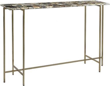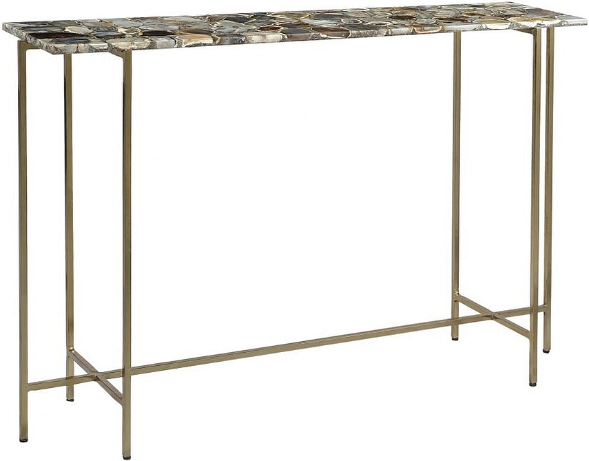 A console table that's worthy of being in a museum. The Agate Console Table's clear-cut agate tabletop reveals earthy tones of the stone's natural colour and sparkle. Paired with a brass finished, solid iron frame, this table is both chic and sophisticated.Read More