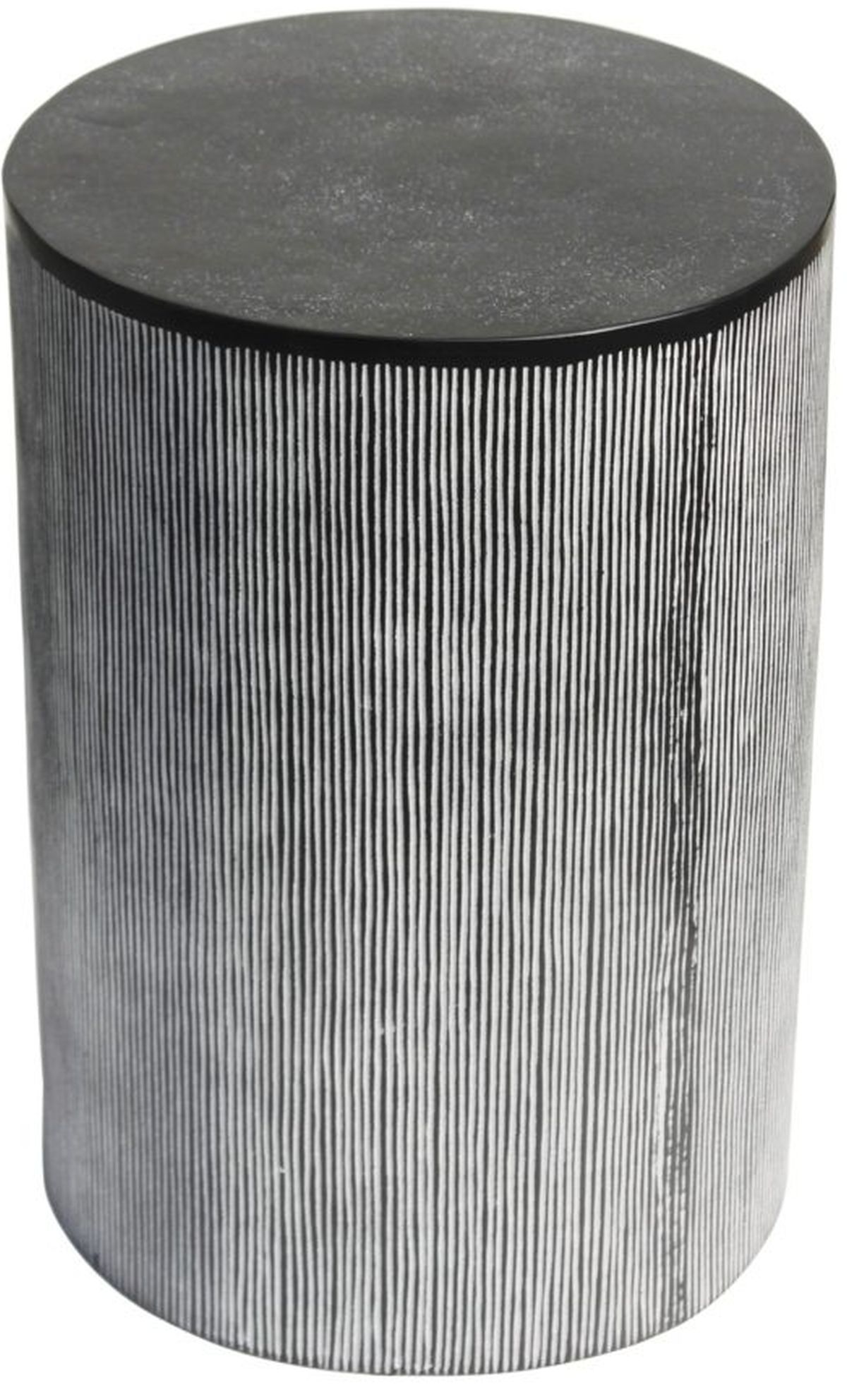 The Althea end table adds whimsy to your decor. It boasts a minimal design with a solid cylinder base and a striped finish. This little end table is made from all-over aluminum for a versatile look.Read More