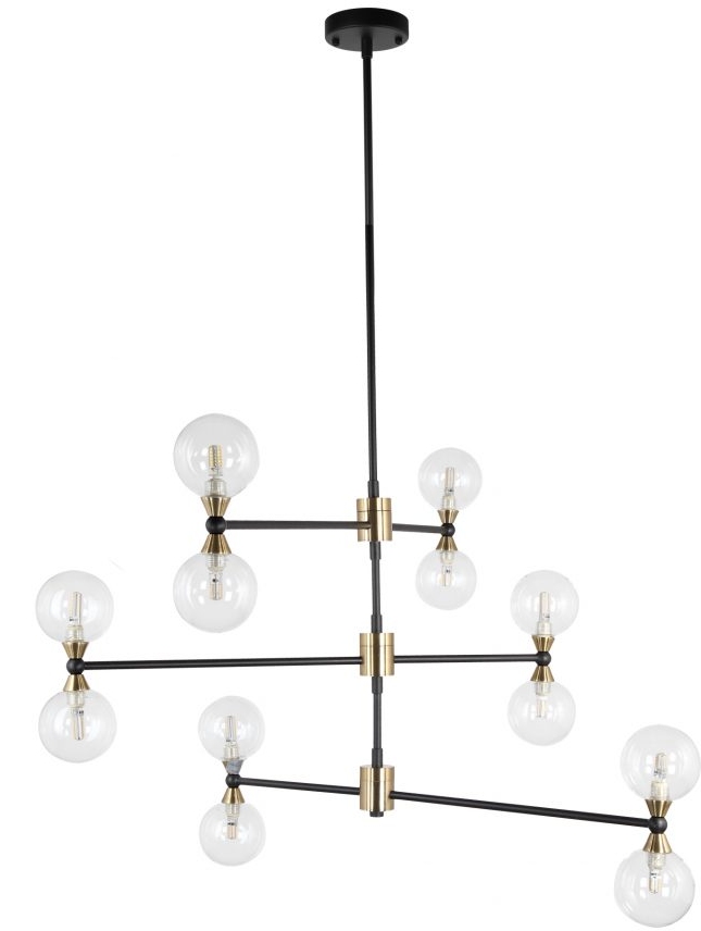Our Centauri Chandelier Light is as dazzling and complex as the Alpha Centauri star system itself. Twelve light bulbs encased in delicate glass orbs extend from sleek, sturdy iron rods. Works as both a light fixture and an art installation. Dimensions: 37"W x 2"D x 25"H
