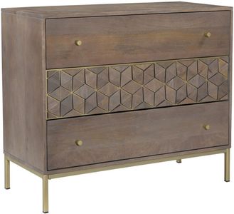 The Corolla drawer chest is an art deco-inspired with a modern twist. Constructed with solid mango wood, this piece makes it resistant to major wear and tear. Its warm tone and intricate drawer fronts and brass detailing provides character and practicality into your bedroom space.Read More