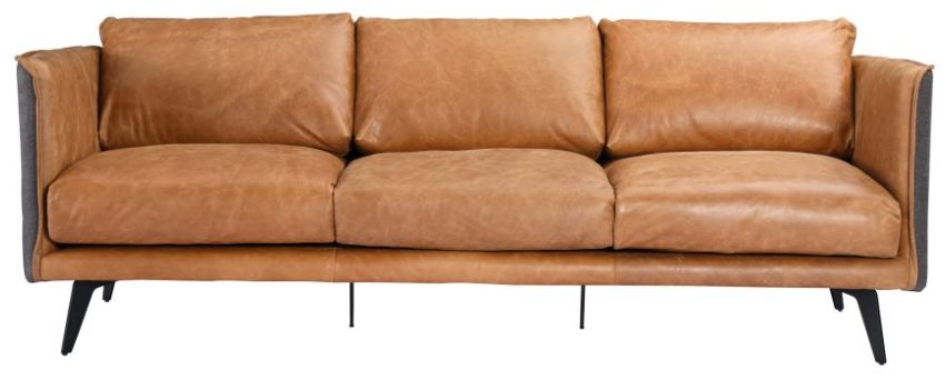 The Messina Leather Sofa is your new favorite sofa. Clean lines and short legs boast mid-century design, while buttery warm leather shows off the sofa's fine quality. Sink back into its stuffed cushions to get the full experience.