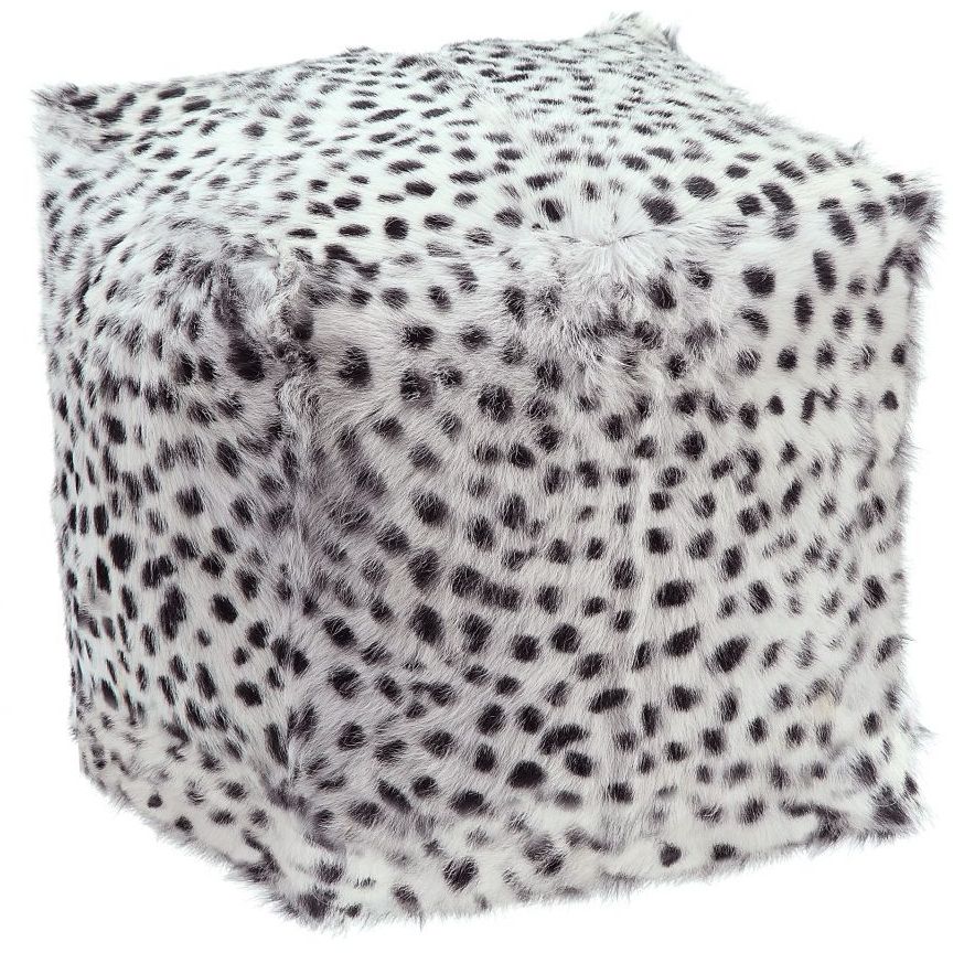 Moe's home features a glamorous goat-fur pillow in an exotic leopard print. Made in China. Dimensions: 16"W x 16"D x 16"H