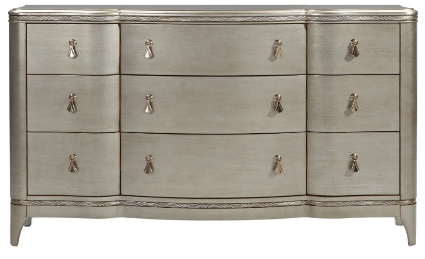 You'll love to put your things away in the opulent Florence Dresser. The sculpted drawer front, rounded edges, stylized trim—all in an extraordinary silver finish—will amaze your eyes. In addition, to its beautiful exterior, it has plenty of storage space. Practical and delightful.Read More