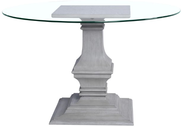 An ornate oak veneer pedestal is the center focus of the stunning Lido Dining Table. Gorgeously finished in smoke veneer, the column beautifully supports the gleaming tempered glass table top.Read More