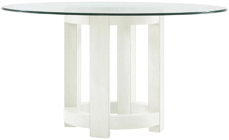 Light, bright, and airy, the Marin Dining Table will bring a bit of joy to your dining area. Reminiscent of a white picket fence, the pedestal is made from solid acacia and finished in an antique white. The smooth tempered glass table surface on top of the sturdy column creates a cheerful atmosphere.Read More